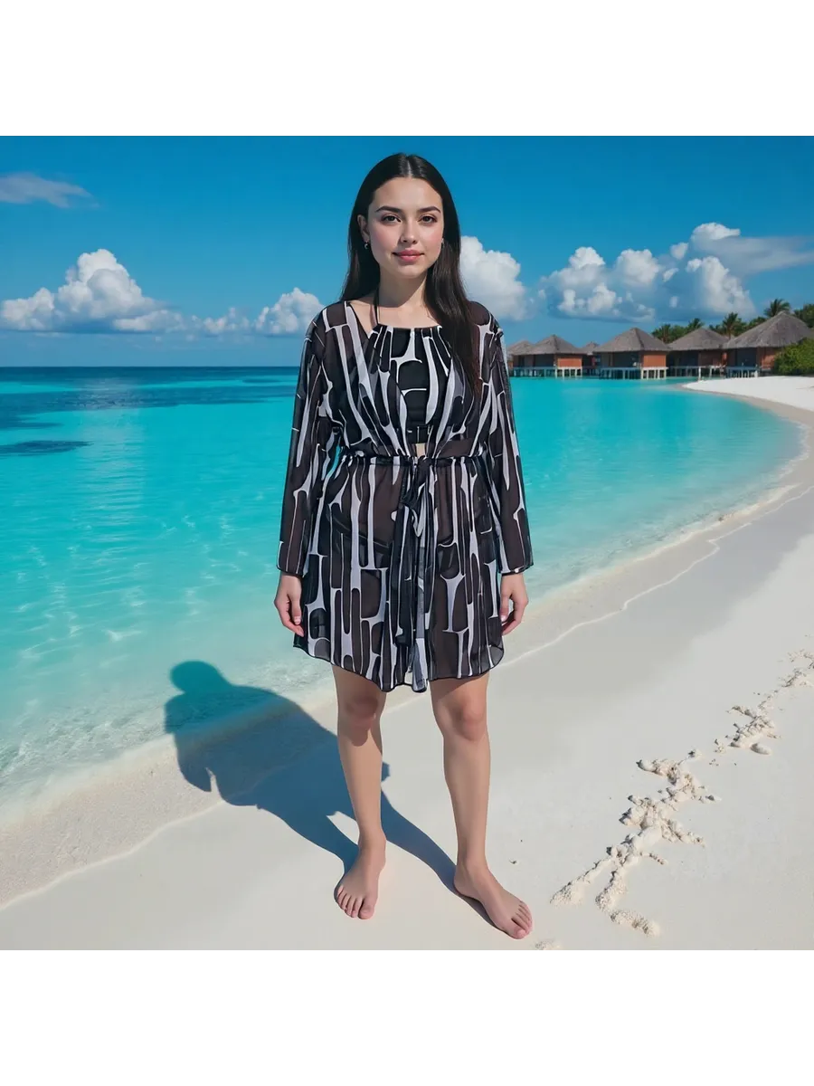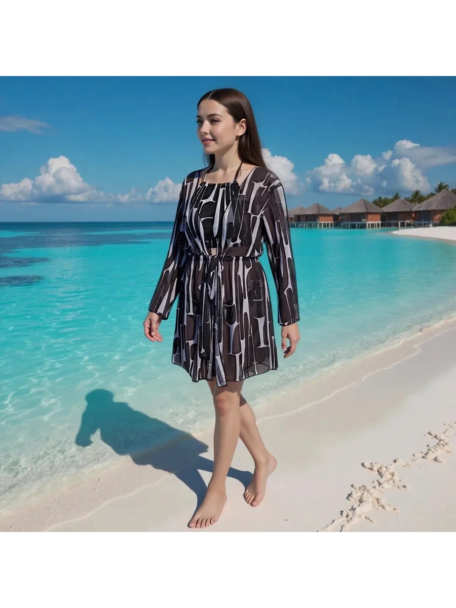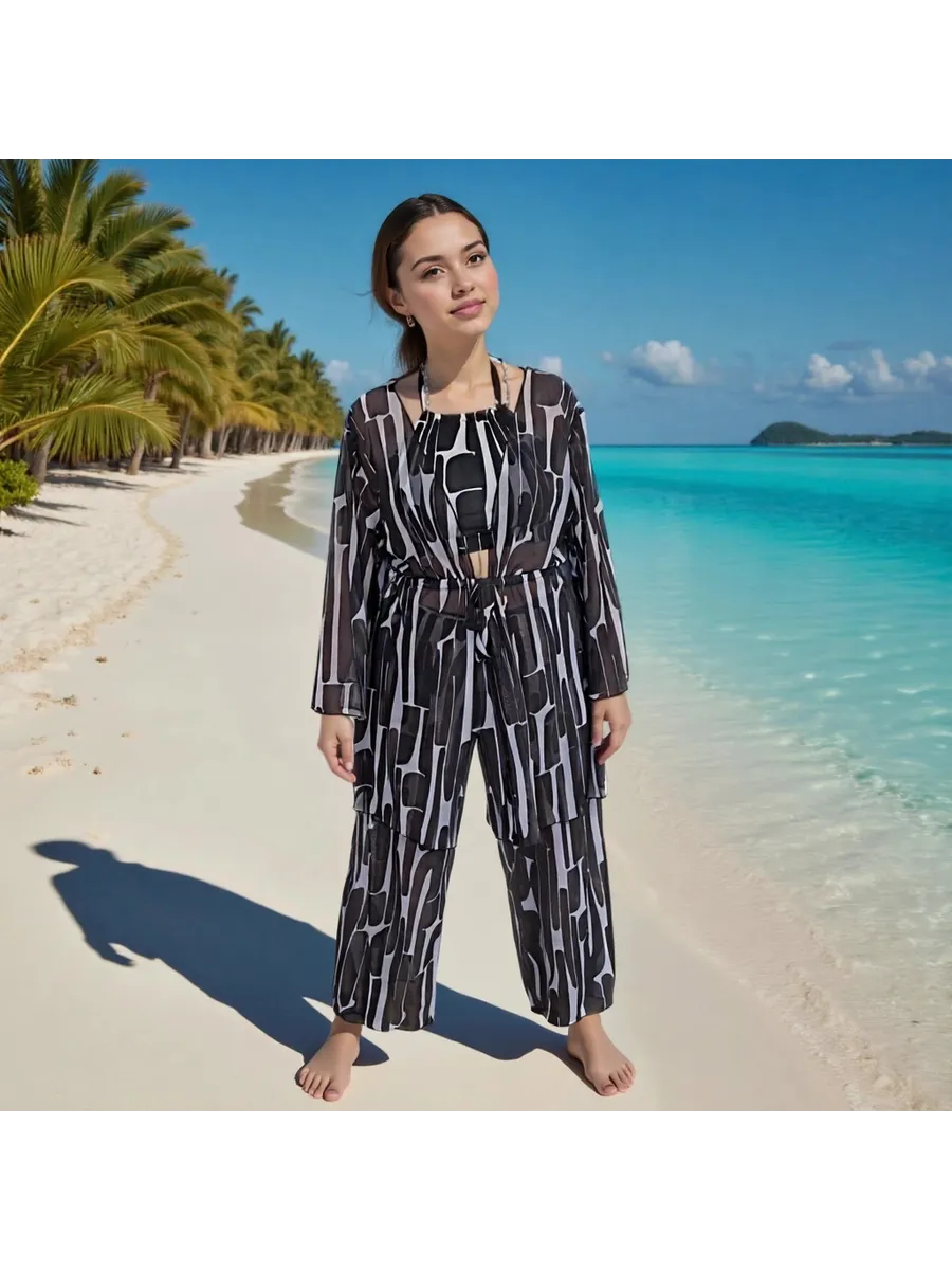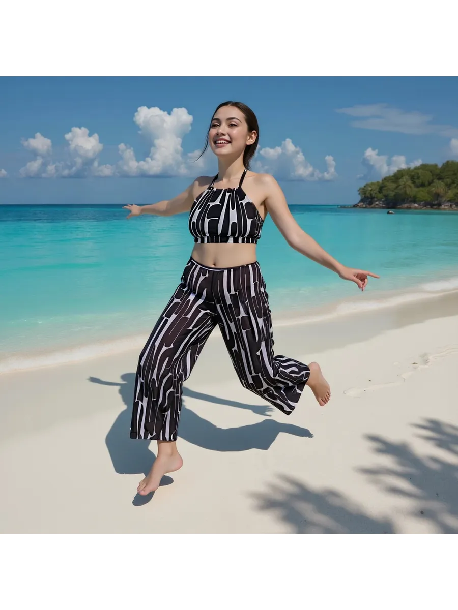 Купальный комплект 4 в 1: лиф, классические плавки, парео и пляжные брюки (палаццо). Модель сочетает комфорт и современный внешний вид — стильный купальник, который легко адаптируется под разные образы.