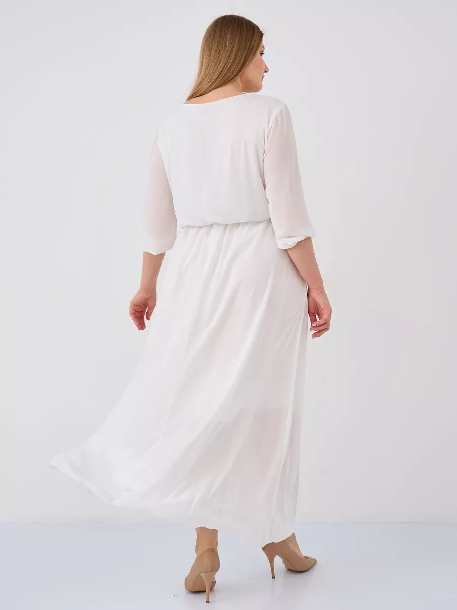 Ткань струящаяся как шелк добавляет платью шика и элегантности. Платье имеет прекрасную посадку благодаря индивидуальной корректировки длины за счёт мягкой комфортной резинки. Модель очень универсальная, прекрасно подойдет как для повседневной носки, так и для праздничного мероприятия с добавлением украшения. Несмотря на длину макси, платье одинаково эффектно смотрится как с обувью на каблуке, так и на плоской подошве. Это платье однозначно станет Вашим любимым в гардеробе.