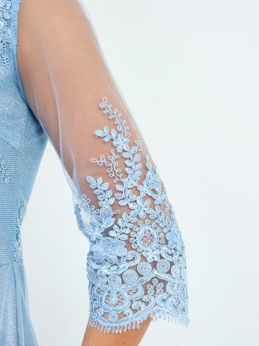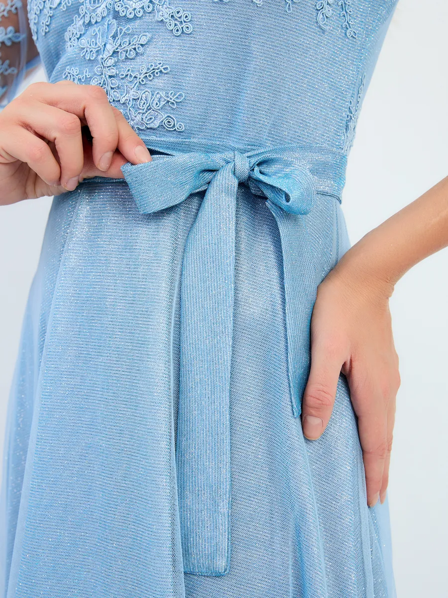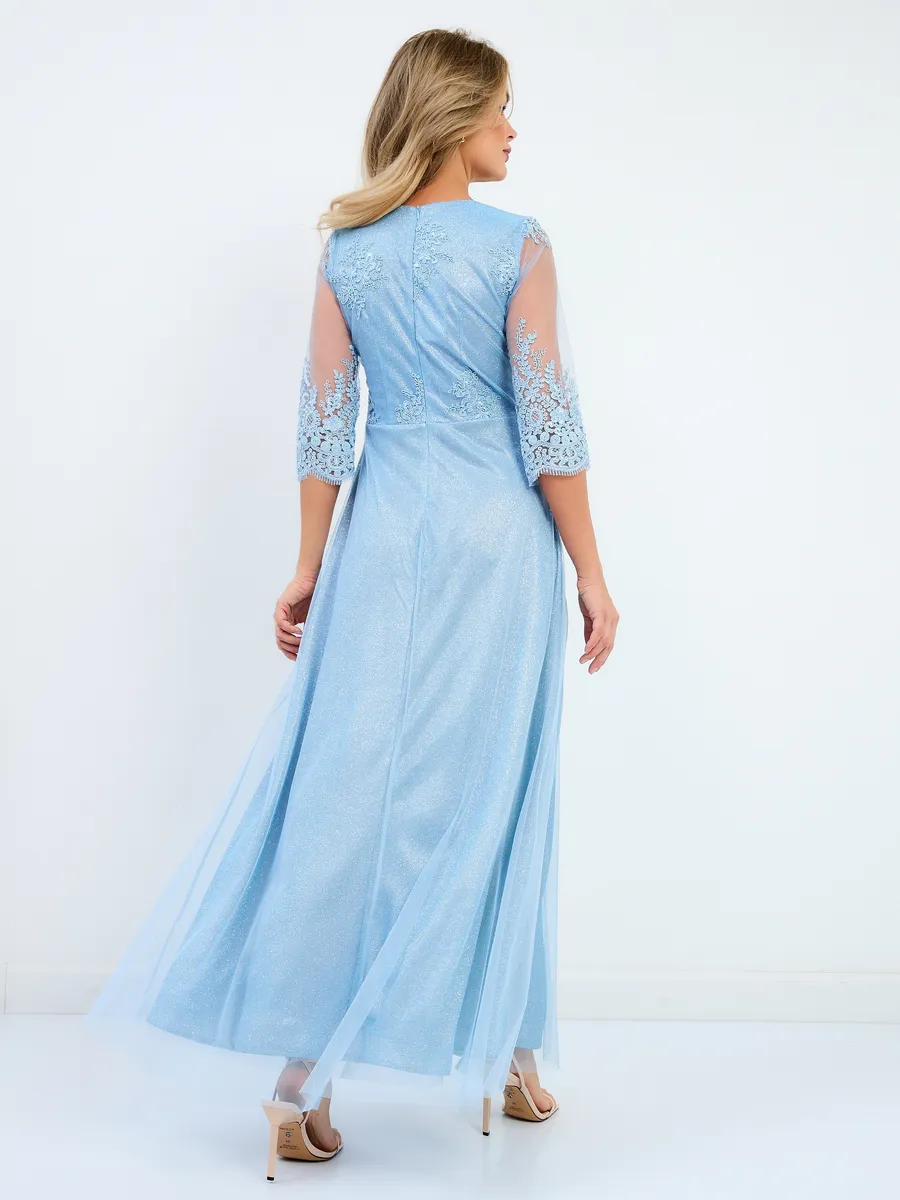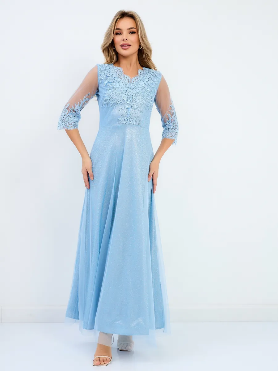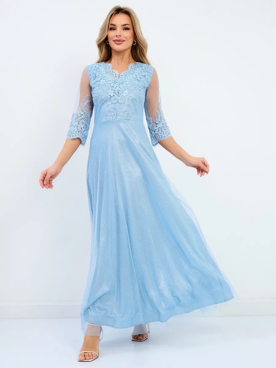 Восхитительное праздничное платье с кружевами выполнено из ткани с блестками - вы будете чувствовать себя комфортно и непринужденно в торжественный день, например на выпускной. Обращаем Ваше внимание, с ткани облетают блестки, пожалуйста, учитывайте это при заказе. Такова специфика этого материала. Рекомендуем перед ноской хорошо прополоскать платье в прохладной воде, чтобы излишек блеска сошел. Красивое платье с рукавом 3/4 и V-образным вырезом горловины не оставит вас незамеченной. Летящий силуэт стройнит и скрывает недостатки фигуры. Подчеркивает достоинства. Подойдёт для повседневного нарядного или вечернего образа. Отлично подходит на свадьбу и любую вечеринку. Платье подходит на любой сезон. Такая красивая одежда станет приятным подарком любой женщине. Отлично сочетается с туфлями на каблуках. Очень стильно выглядит как на фото так и в реальности. Женственное блестящее платье не оставит вас без комплиментов и восторженных взглядов! Оно прекрасно смотрится в тандеме с золотистыми и серебристыми босоножками или туфлями.
